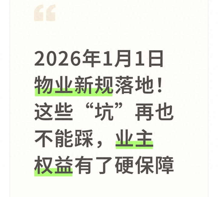 2026年开年,物业行业迎来了前所未有的监管变局——1月1日起,国度层面出台的《物业管制行业范例化整治履行决策》看重落地,从收费、服务、解聘到群众收益管制,都规则了明确的“红线”。以往物业乱收费、服务差、拒不整改的状态,再也不成靠“拖”和“躲”蒙混过关,业主们遥远以来的维权痛点,终于有了实打实的处理依据。