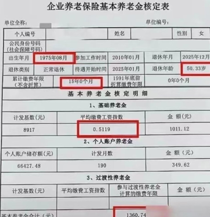 缴费年限和缴费指数都卡着最低圭臬来交,那么个东谈主账户的存额也不高,累计缴费15年个东谈主账户也就六万多块钱,再加上这位大姐50岁退休,个东谈主待业金计较的计发月数是190个月,是以个东谈主待业金也很低。