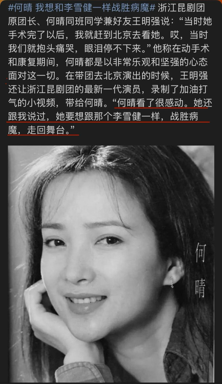 但是在肿瘤复发扩散后,何晴的话语智商几近丧失、还因中风步履未便。
