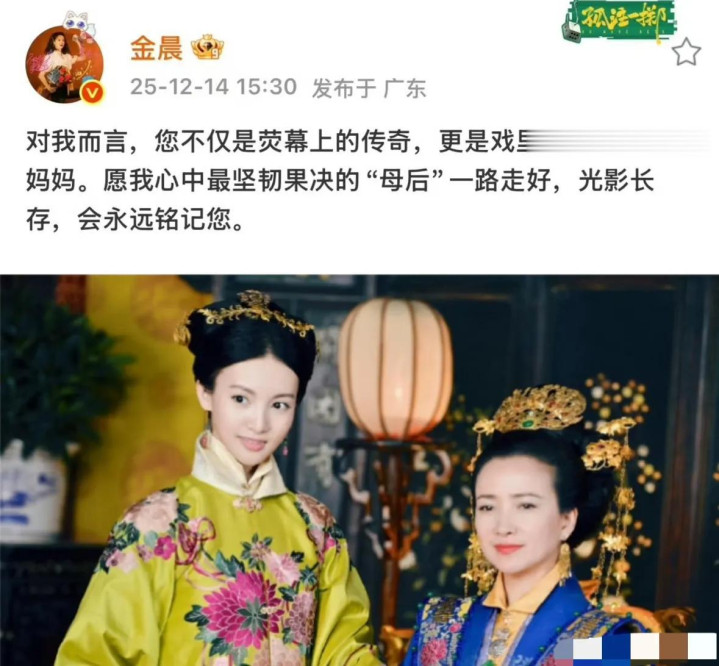 和她在这部戏中扮演母女的金晨,就发文吊唁: