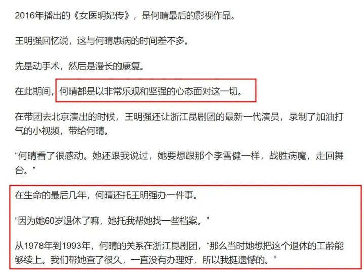此事一直到何晴离世都没能兑现,王明强深感缺憾。