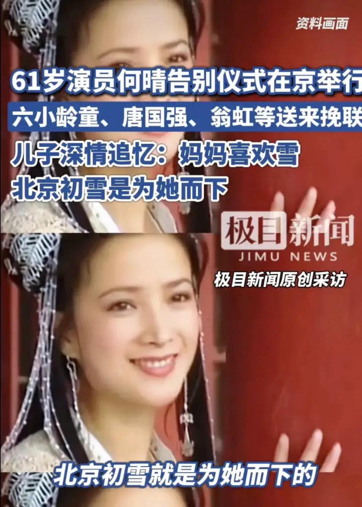 她的告别庆典上,唐国强、六小龄童、翁虹等,当年配合过的同业纷繁送来挽联。